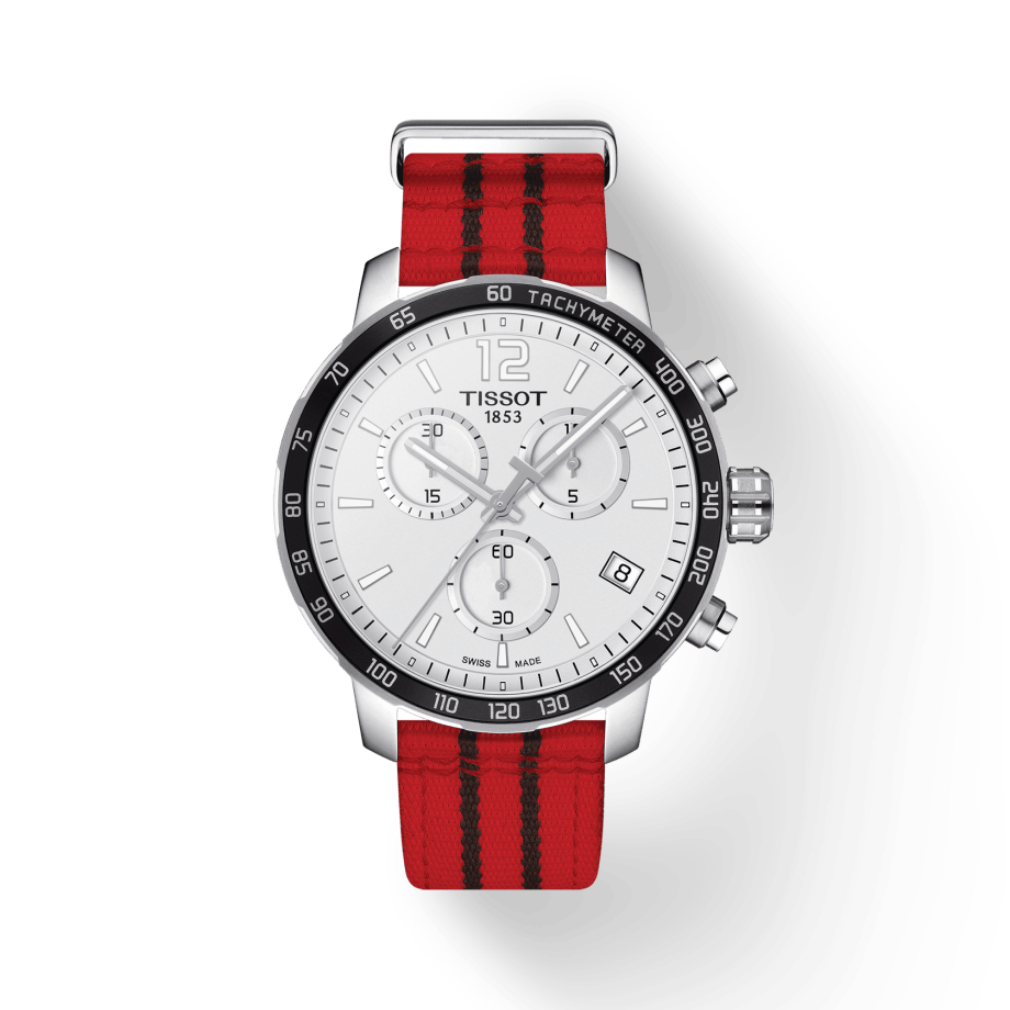 Tissot Quickster Chronograph NBA Chicago Bulls White Dial Red NATO Strap Watch For Men - T095.417.17.037.04