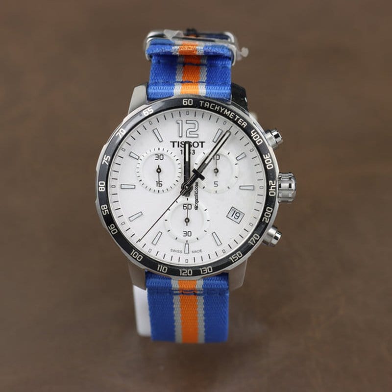 Tissot Quickster Chronograph NBA New York Kicks White Dial Multicolored Nato Strap Watch For Men - T095.417.17.037.06