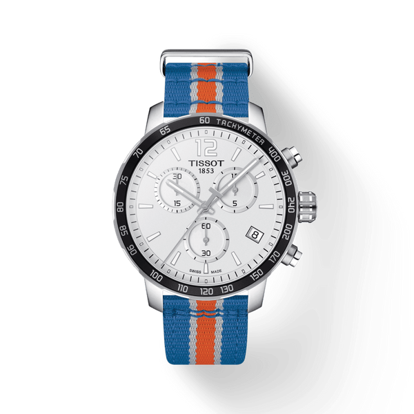 This special edition model has been launched to celebrate Tissot becoming the official timekeeper of the NBA. Tissot presents the New York Knicks Quickster model complete with the New York Knicks logo on the case-back. This family of watches combine sports and modernity offering style, practicality and Swiss reliability.