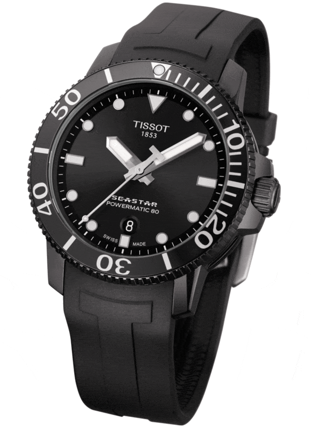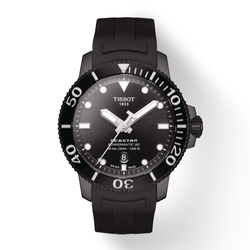 Discover the power and precision of the Tissot Seastar 1000 Powermatic 80 Black Dial Watch. Featuring a durable black rubber strap and a sleek black dial, this timepiece is perfect for any adventure. With its Powermatic 80 movement, it boasts 80 hours of power reserve for long-lasting accuracy. Experience the ultimate in Swiss engineering and style.