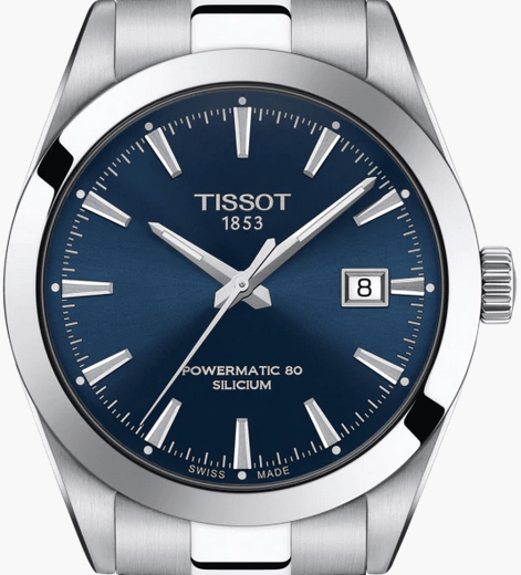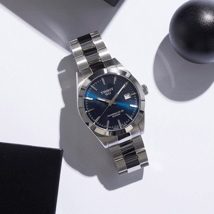 Tissot Gentlemen Powermatic 80 Silicium Blue Dial Silver Steel Strap Watch For Men - T127.407.11.041.00