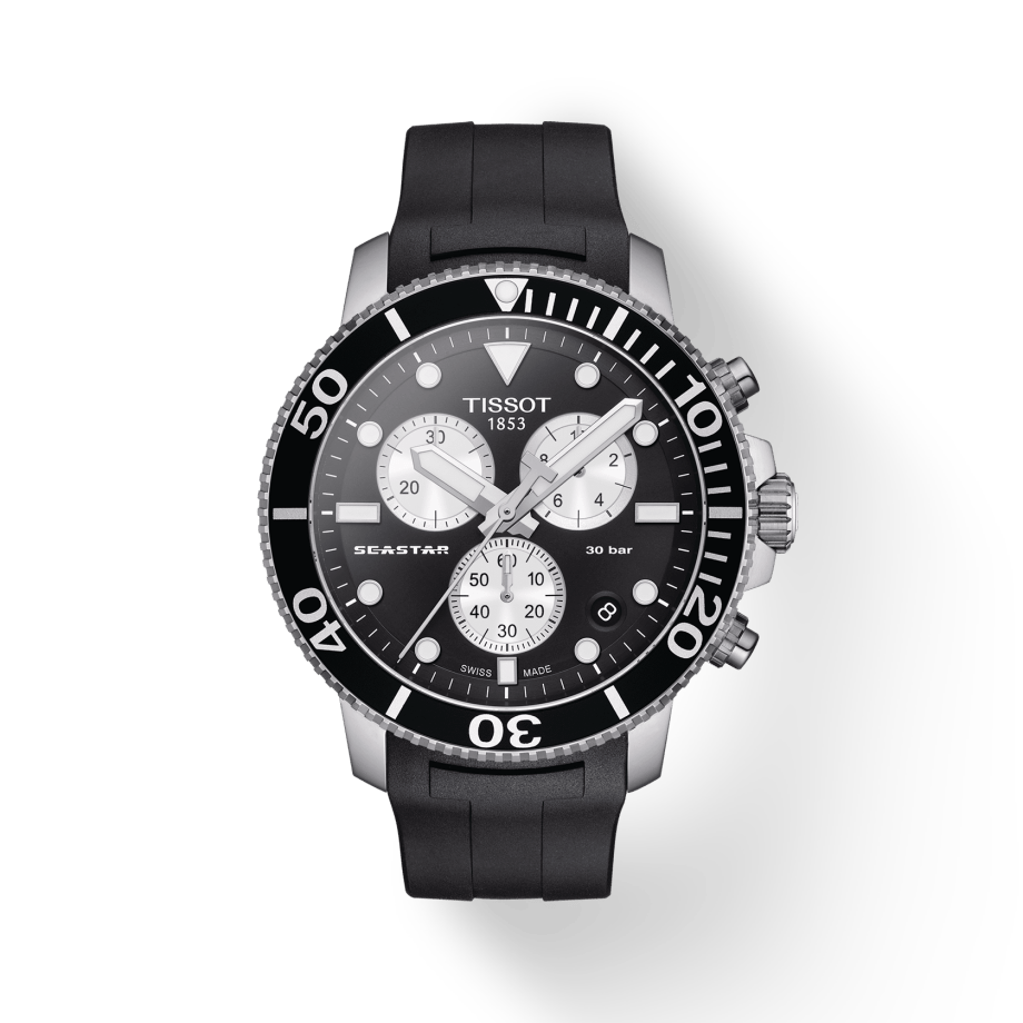 Tissot Seastar 1000 Chronograph Black Dial Black Rubber Strap Watch For Men - T120.417.17.051.00