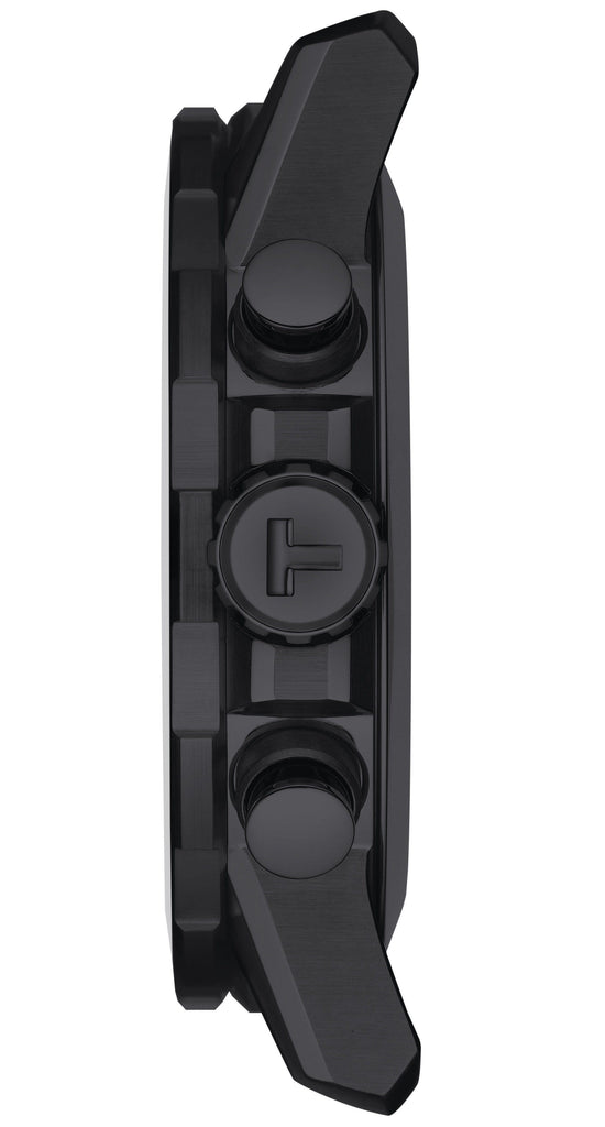 Scratch resistant sapphire crystal. Solid case back. Round case shape. Case size: 45.5 mm. Case thickness: 11.9 mm. Band width: 22 mm. Tang clasp. Water resistant at 100 meters / 330 feet. Functions: chronograph, rattrapante, date, hour, minute, small second. Supersport Series. Sport watch style. Watch label: Swiss Made. Tissot Supersport Chronograph Quartz Black Dial Men's Watch T125.617.37.051.01.
