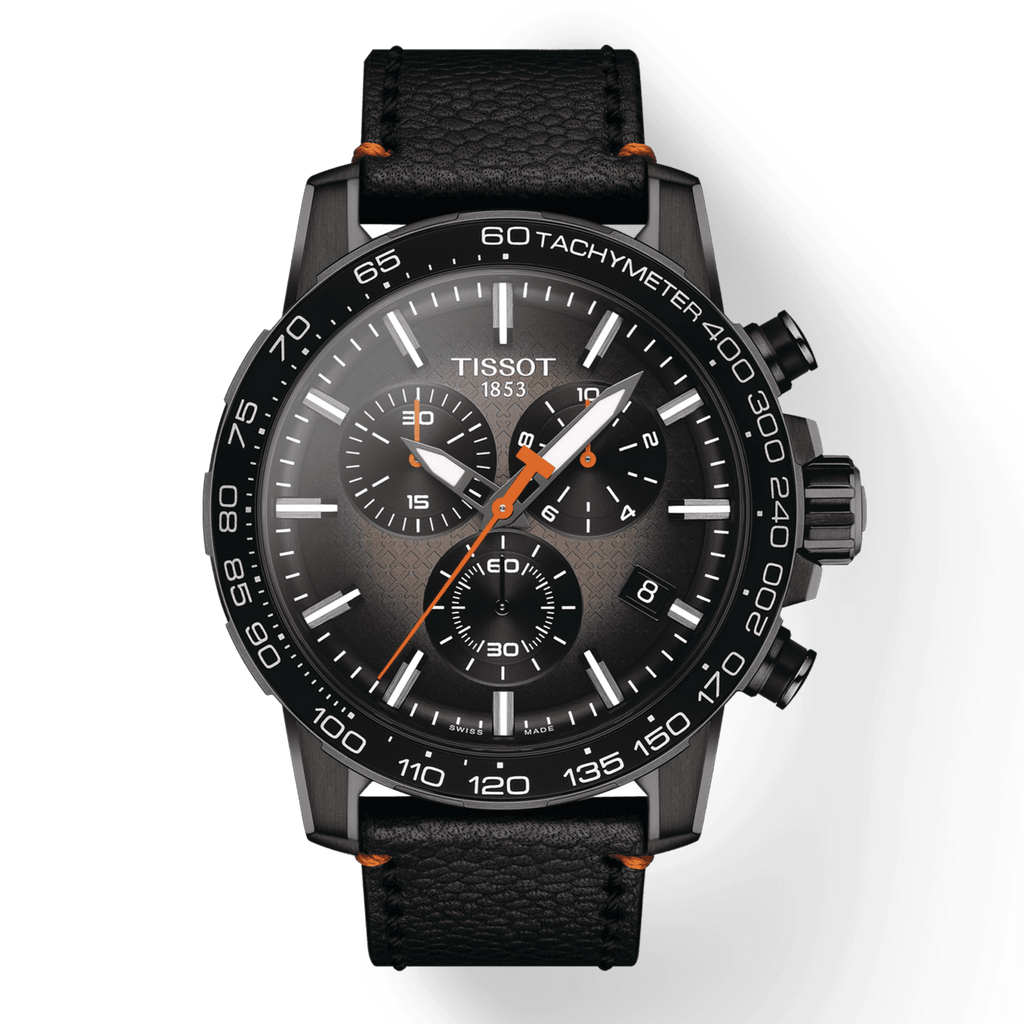 The Supersport Chrono Basketball Edition is a modern and masculine sports chronograph watch that brings together quality Swiss watchmaking and design with the high-energy dynamics inspired by Tissot’s long association with basketball. The gradient black dial with an original basketball net pattern and orange corner stitching on the bracelet are a nod to this discipline and its culture. With a 45.5 mm stainless steel case with black-PVD coating, it features a fixed bezel with a tachymetric scale, the Supersport has a great deal of character.