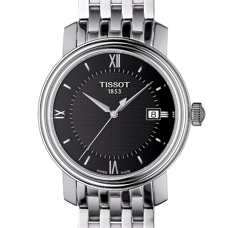 Tissot T Classic Bridgeport Black Dial Silver Steel Strap Watch For Men - T097.410.11.058.00