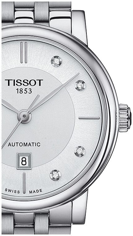 Tissot T Classic Carson Premium White Diamonds Dial Silver Steel Strap Watch for Women - T1222071103600