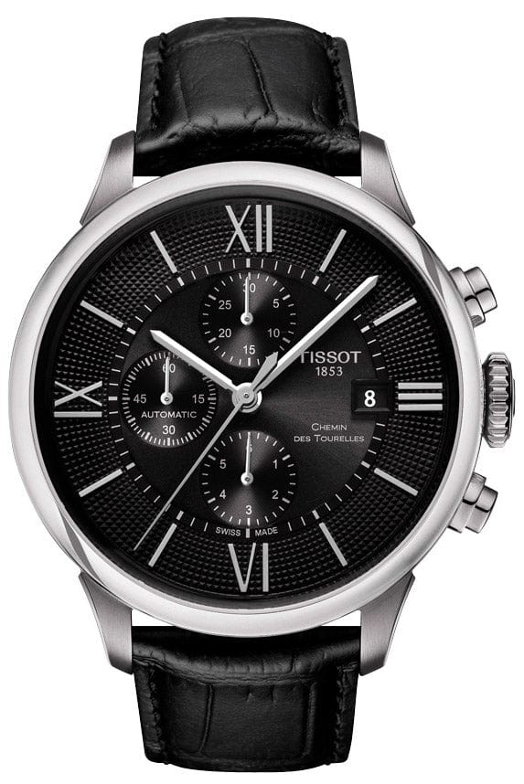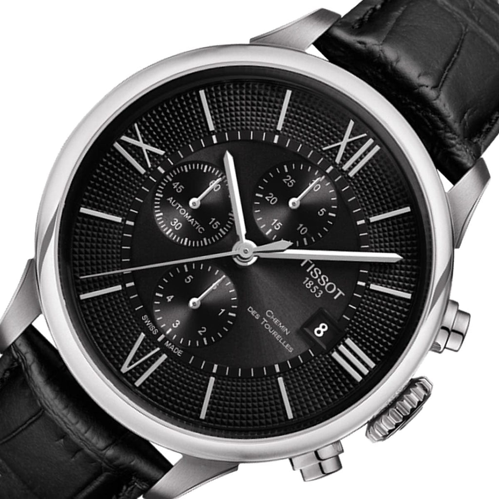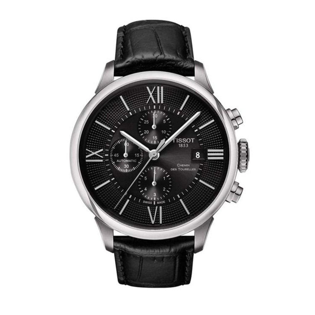 Tissot T Classic Chemin Des Tourelles Chronograph Black Dial Black Leather Strap Watch For Men - T099.427.16.058.00