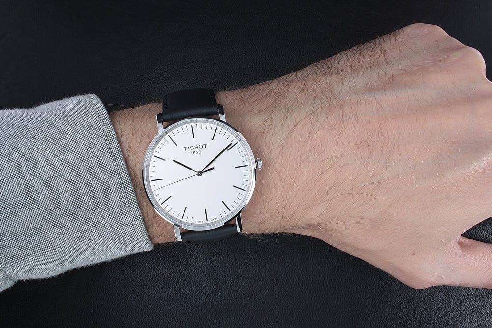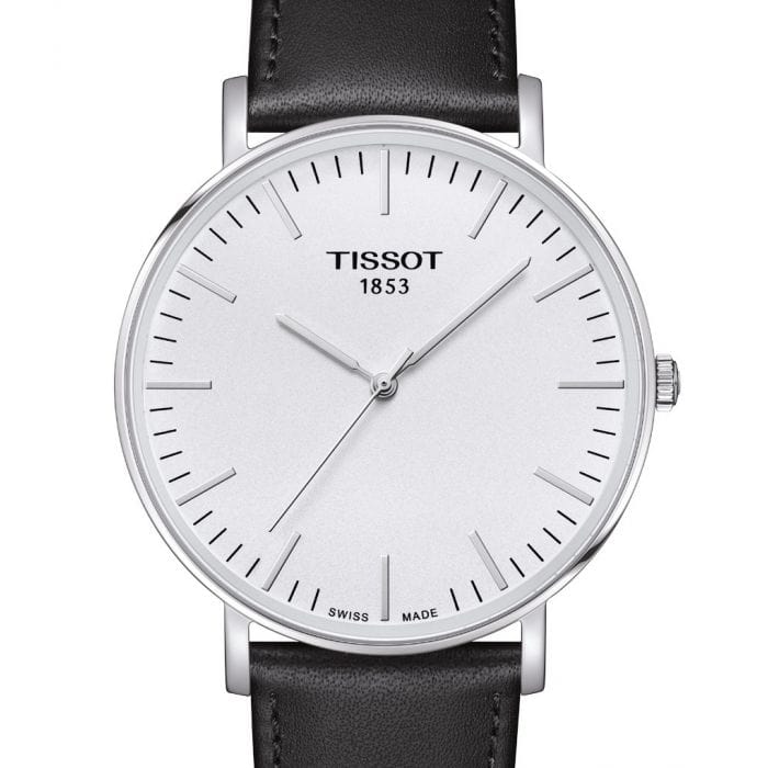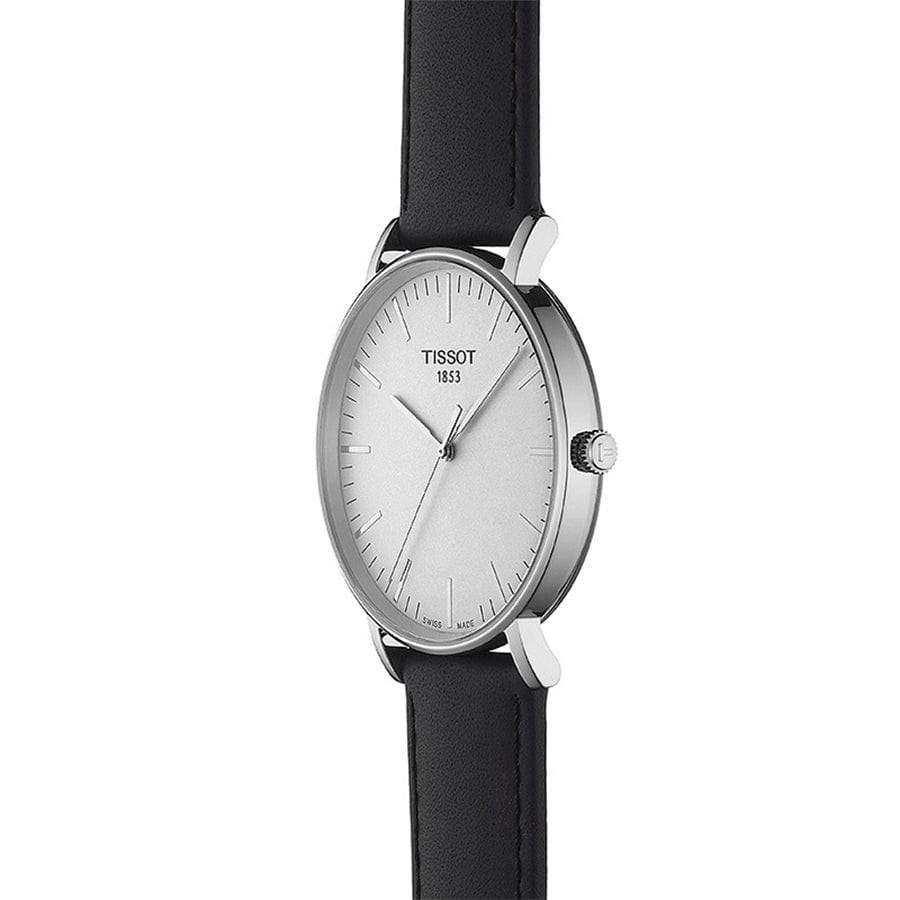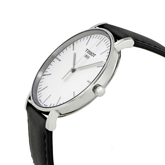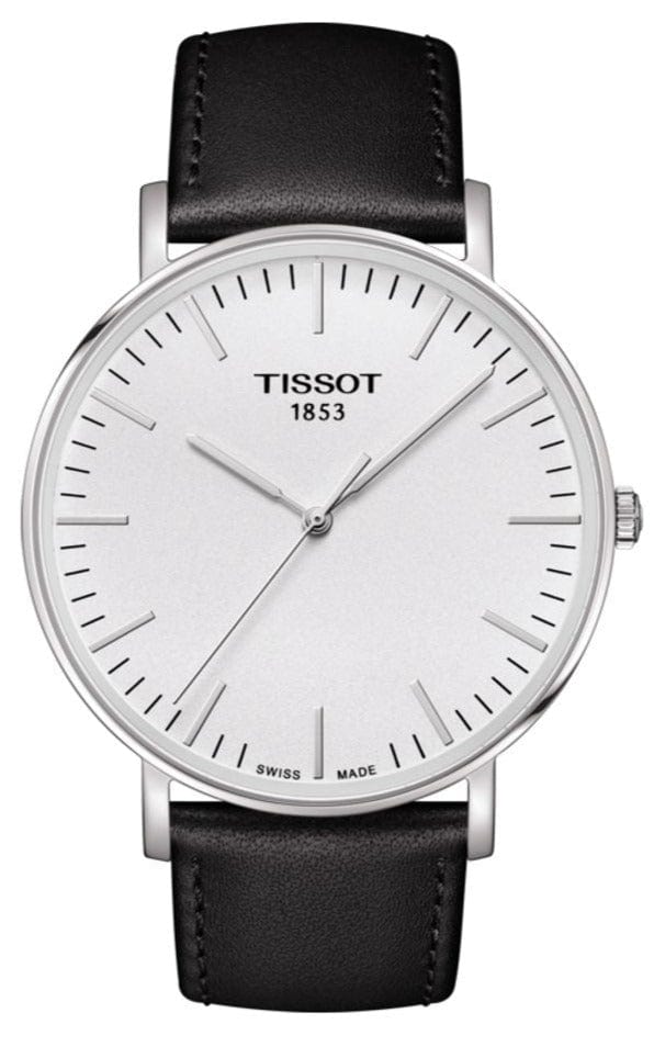 Tissot T Classic Everytime Large White Dial Black Leather Strap Watch For Men - T109.610.16.031.00