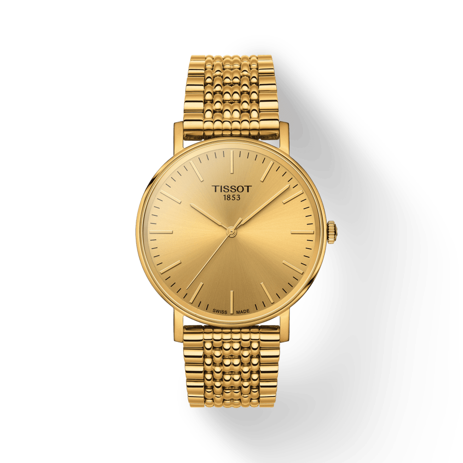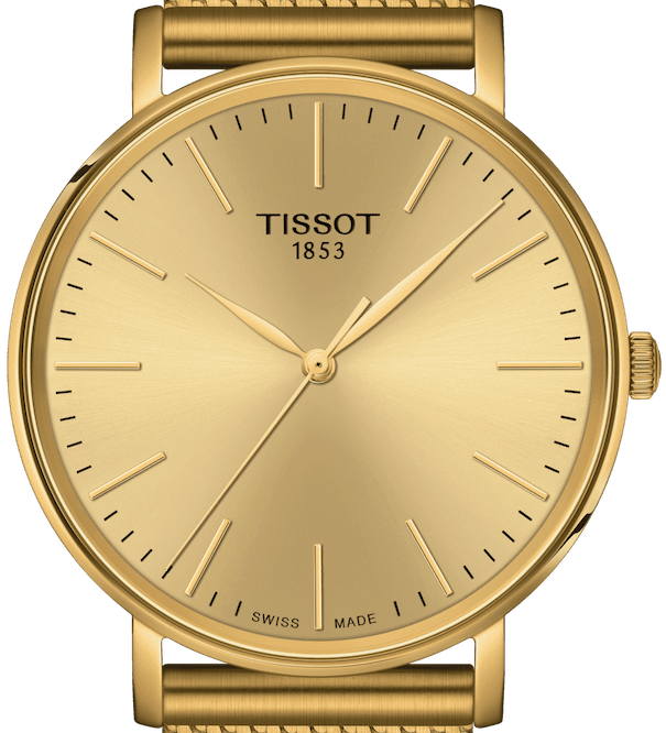 Tissot T Classic Everytime Medium Gold Dial Gold Mesh Bracelet Watch For Men - T109.410.33.021.00