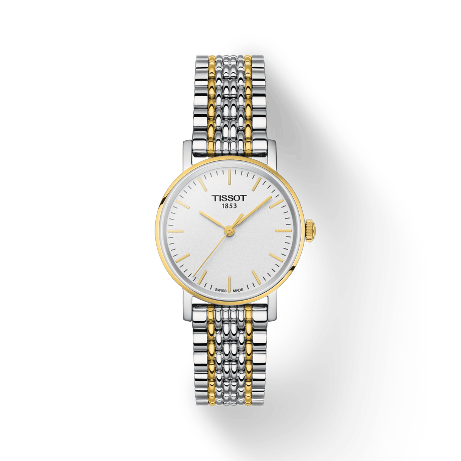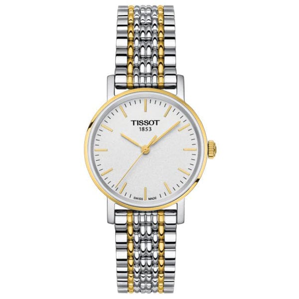 Tissot T Classic Everytime Small White Dial Two Tone Mesh Bracelet Watch For Women - T109.210.22.031.00
