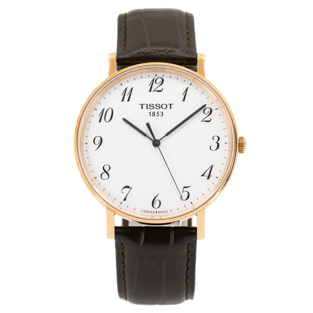 Tissot T Classic Everytime White Dial Black Leather Strap Watch For Men - T109.610.36.032.00