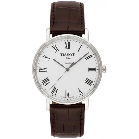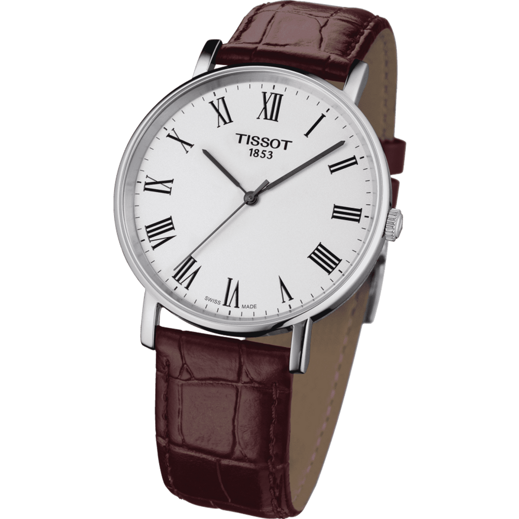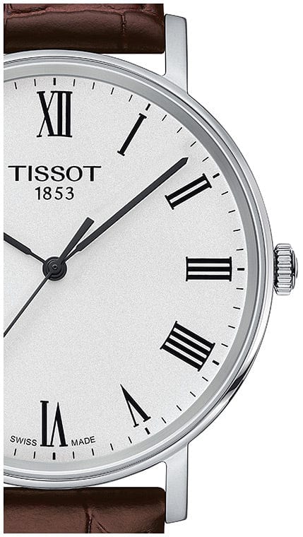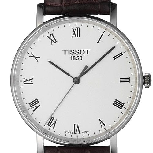 Tissot T Classic Everytime White Dial Brown Leather Strap Watch For Men - T109.410.16.033.00