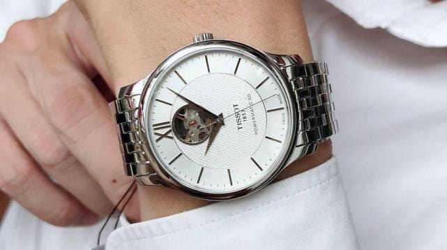 The Tissot Tradition gives modern watchmaking a hint of nostalgia with a vintage-style perfectly balanced with classical details and subtle finishes. These are complemented by design elements such as guilloche decoration on bracelet models and a gently curved case. This new model has an open heart on the dial and a see through case back to expose the automatic movement.
