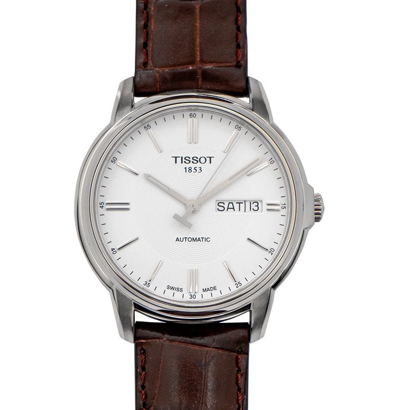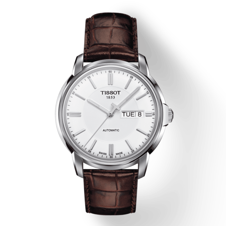Tissot Automatics III Steel White Dial Brown Leather Strap Watch For Men - T065.430.16.031.00