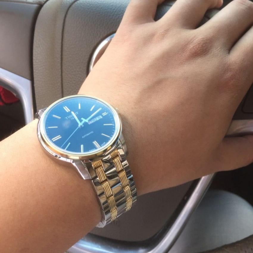Experience luxury and precision with the Tissot Automatics III Day Date Watch for Men. The sleek black dial and two-tone steel strap exude sophistication, while the automatic movement and day-date feature offer convenience and reliability. A must-have accessory for the modern man.