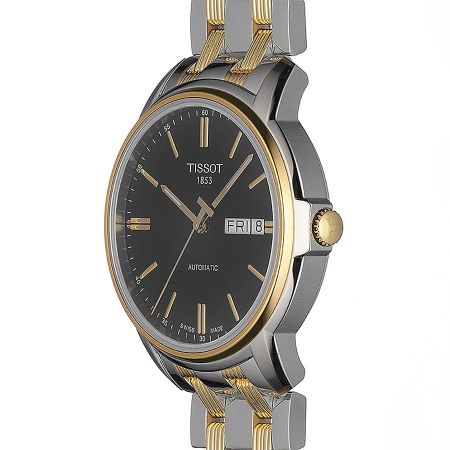 Tissot Automatics III Day Date Black Dial Two Tone Steel Strap Watch For Men - T065.430.22.051.00