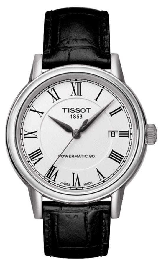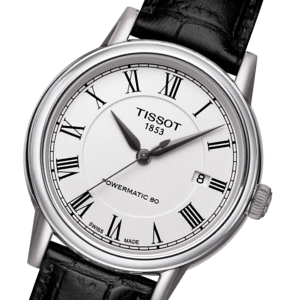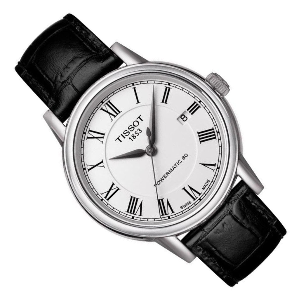 Tissot Carson Powermatic 80 White Dial Black Leather Strap Watch For Men - T085.407.16.013.00