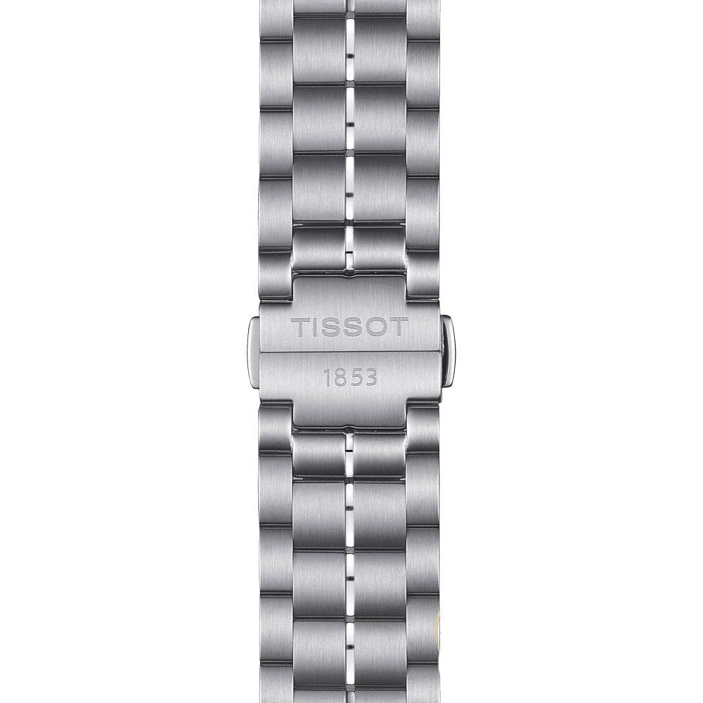 Silver-tone stainless steel case with a silver-tone stainless steel bracelet. Fixed silver-tone stainless steel bezel. Silver dial with silver-tone hands and index hour markers. Minute markers around the outer rim. Dial Type: Analog. Date display at the 3 o'clock position. Tissot Calibre Powermatic 80 (C07.111) automatic movement with an 80-hour power reserve. Scratch resistant sapphire crystal. Pull / push crown. Transparent case back.Round case shape, case size: 41 mm, case thickness: 9.75 mm. Band width: 22 mm, band length: 8 inches. Deployment with push button release clasp. Water resistant at 50 meters / 165 feet. Functions: date, hour, minute, second. Dress watch style. Watch label: Swiss Made. Item Variations: T086 408 11 031 00, T086-408-11-031-00, T086/408/11/031/00, T0864081103100. Tissot Luxury Automatic Silver Dial Men's Watch T086.408.11.031.00.
