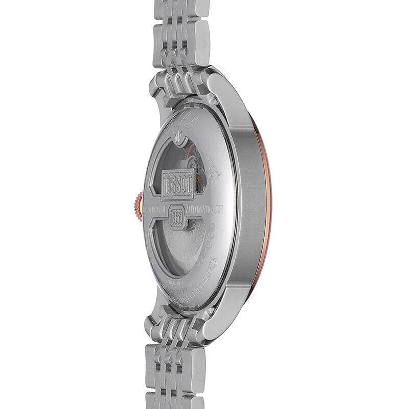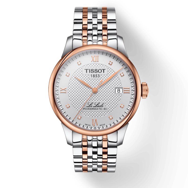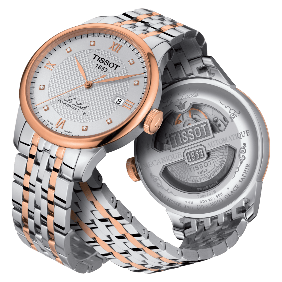 Le Locle is the name of Tissot's home town, the cradle of the watchmaking industry, which expresses the values of traditional craftsmanship. This range of Tissot Le Locle welcomes beautiful new timepieces that bear the revolutionary Powermatic 80 movement, which allows them to offer up to 80 hours of power reserve. Within the realm of Tissot's emblematic watches, this new version embodies sophistication with dials featuring as indices Roman numerals and Wesselton diamonds. The see-through case-back is engraved with a traditional Le Locle signature to complete the picture of classical chic.