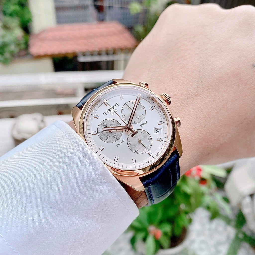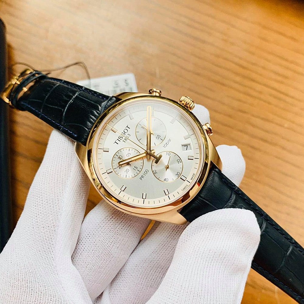 Tissot T Classic PR 100 Chronograph Silver Dial Black Leather Strap Watch for Men - T101.417.36.031.00