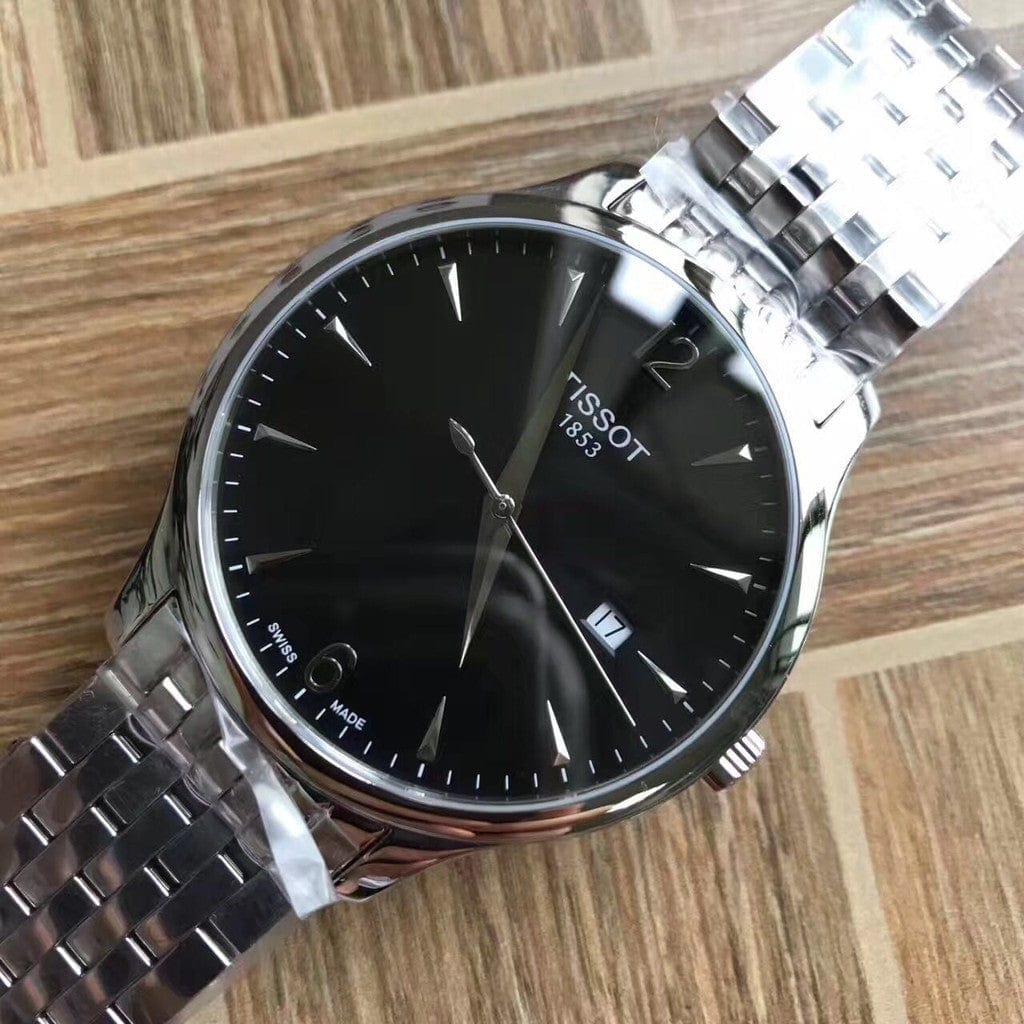 Tissot T Classic Tradition Black Dial Silver Steel Strap Watch For Men - T063.610.11.057.00