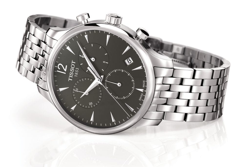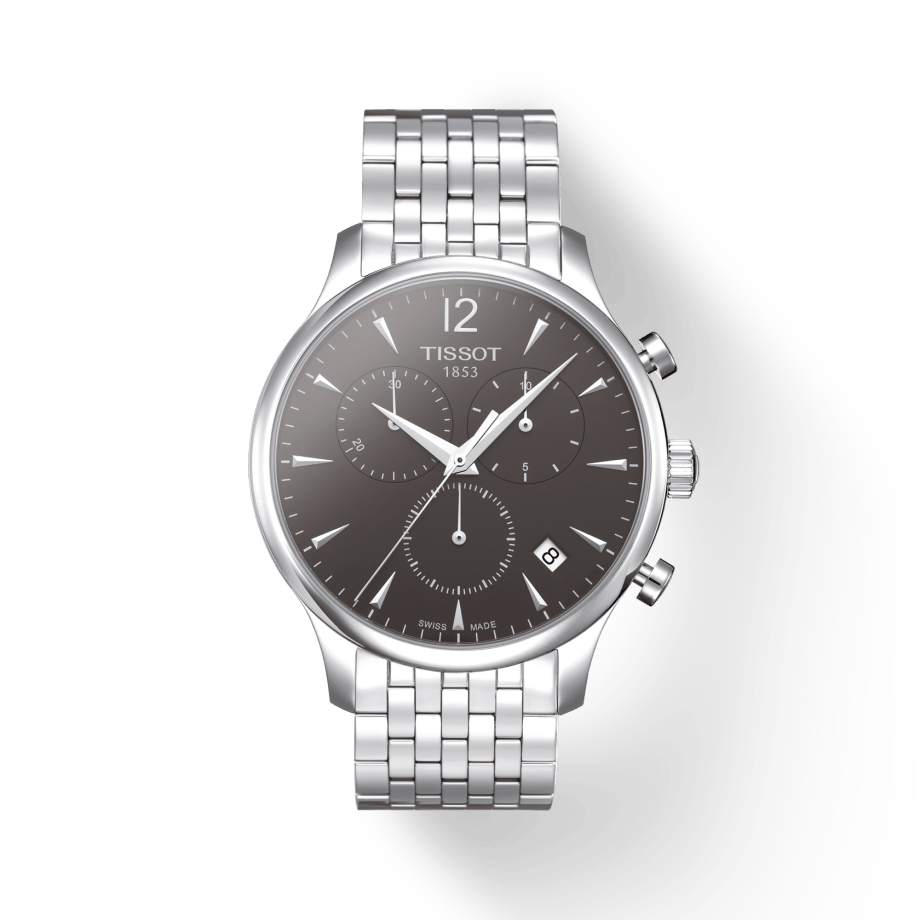 Tissot T Classic Tradition Chronograph Black Dial Silver Steel Strap Watch For Men - T063.617.11.067.00