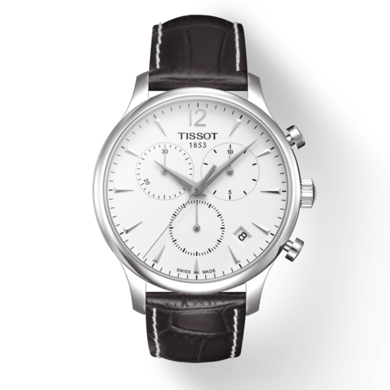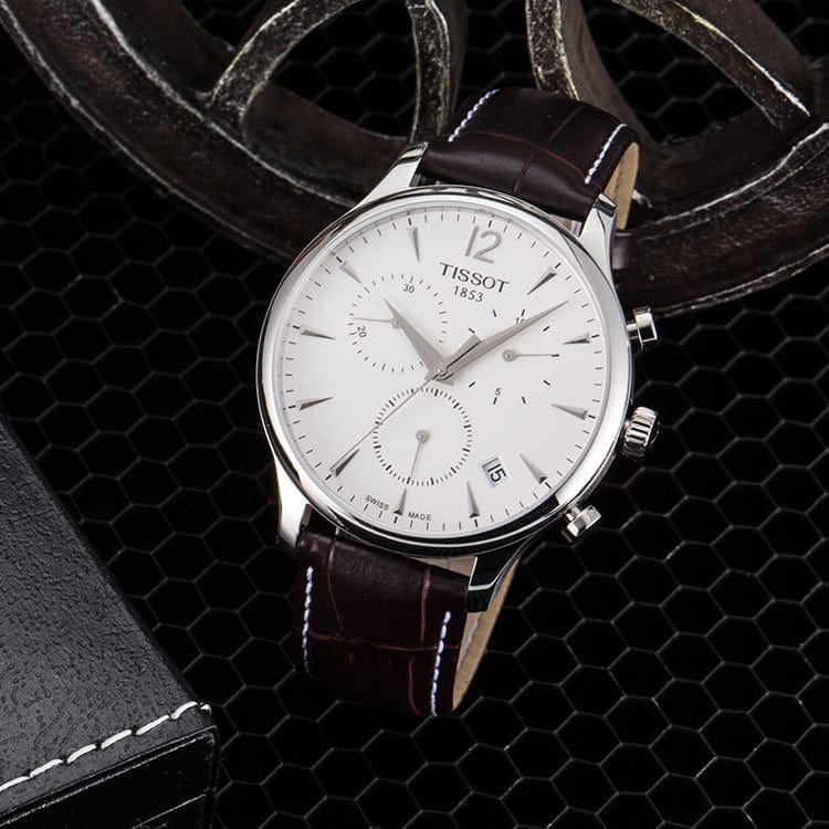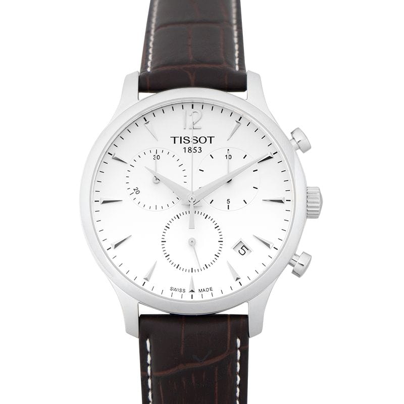 Tissot T Classic Tradition Chronograph White Dial Brown Leather Strap Watch For Men - T063.617.16.037.00