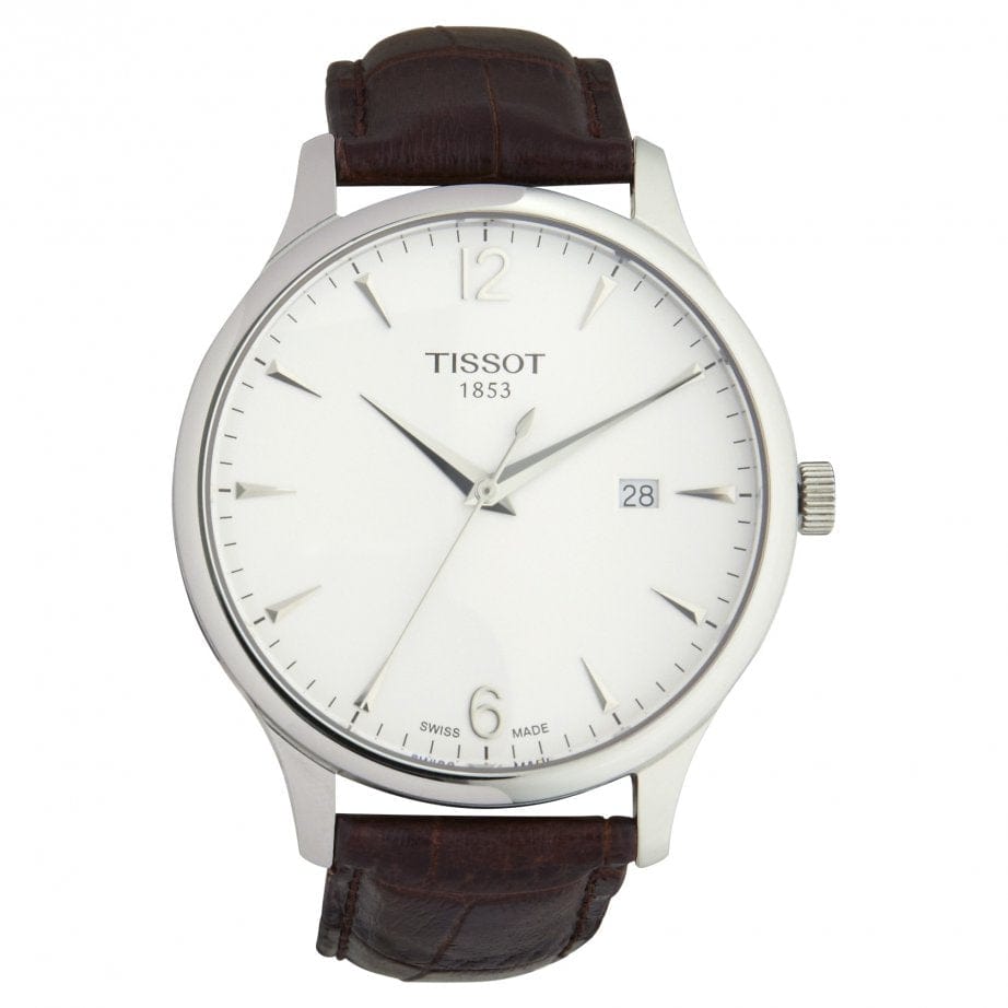Tissot T Classic Tradition White Dial Brown Leather Strap Watch For Men - T063.610.16.037.00