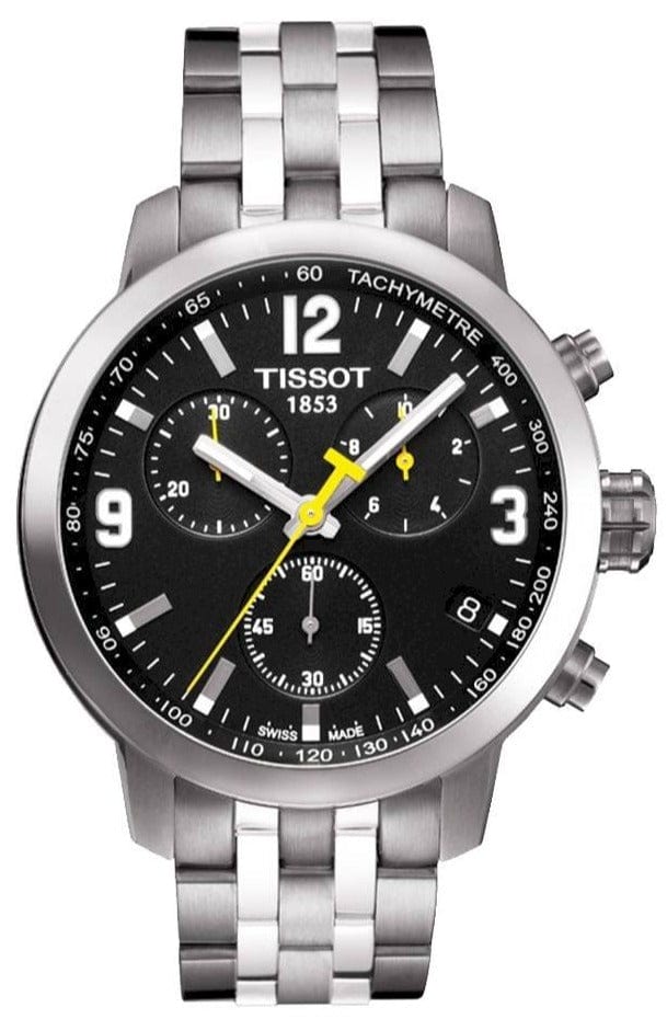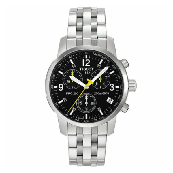 Tissot T Sport PRC200 Chronograph Black Dial Silver Steel Strap Watch for Men - T17.1.586.52