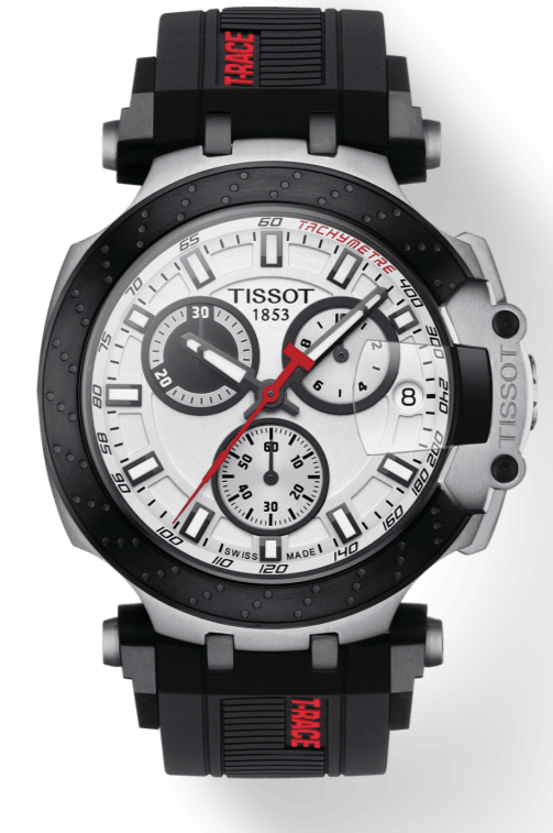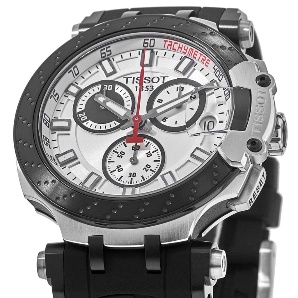 Expertly crafted for the modern man, the Tissot T Race Chronograph Watch boasts a sleek black silicone strap and a striking white dial. With precise chronograph functionality, this timepiece is perfect for any occasion. Elevate your style and stay on track with Tissot.