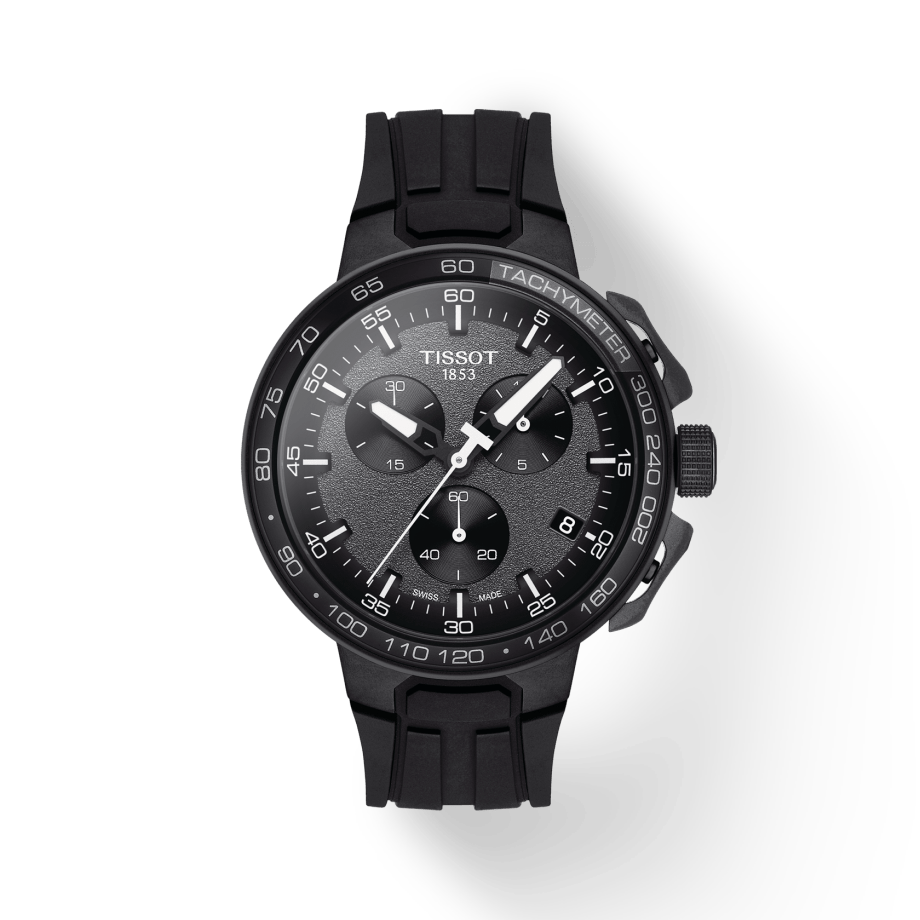 The Tissot T-Race Cycling celebrates our passion for cycling and is a must-have for all cycling fans ! This sporty watch features many details inspired by racing bikes and there are several choices of colours. The pushers look and operate like brake levers. The colour stripes on the straps and the lugs depict the fork of the bike with the wheel running through in black.