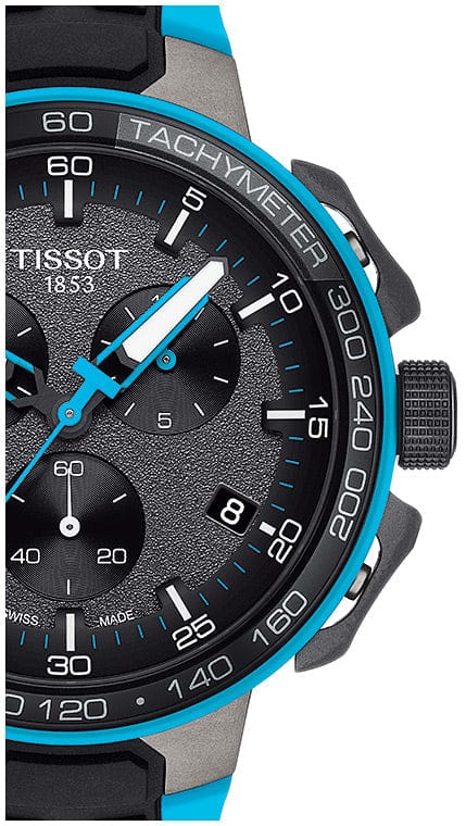 The Tissot T-Race Cycling celebrates our passion for cycling and is a must-have for all cycling fans ! This sporty watch features many details inspired by racing bikes and there are several choices of colours. The pushers look and operate like brake levers. The colour stripes on the straps and the lugs depict the fork of the bike with the wheel running through in black.
