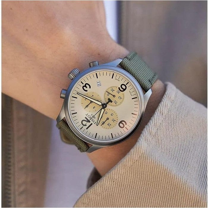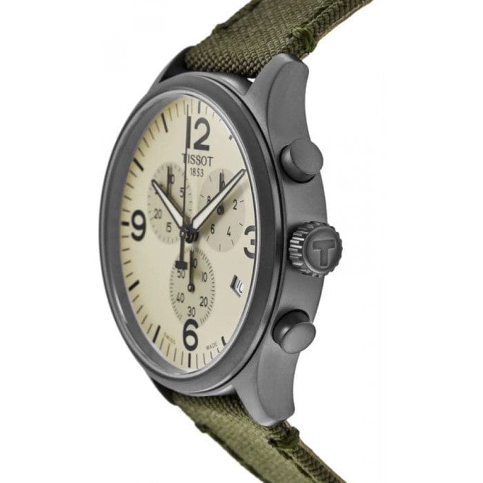 Tissot T Sport Chrono XL Beige Dial Green Nylon Strap Watch for Men - T116.617.37.267.00