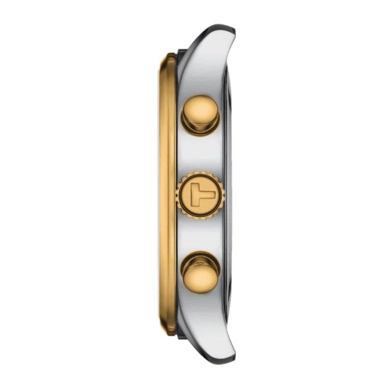 Crafted with precision and style, the Tissot T Sport Chrono XL is a classic timepiece designed for men. Its elegant gold dial and two-tone steel strap exude sophistication, while its chronograph function offers precise timekeeping. Elevate your look with this expertly crafted watch.