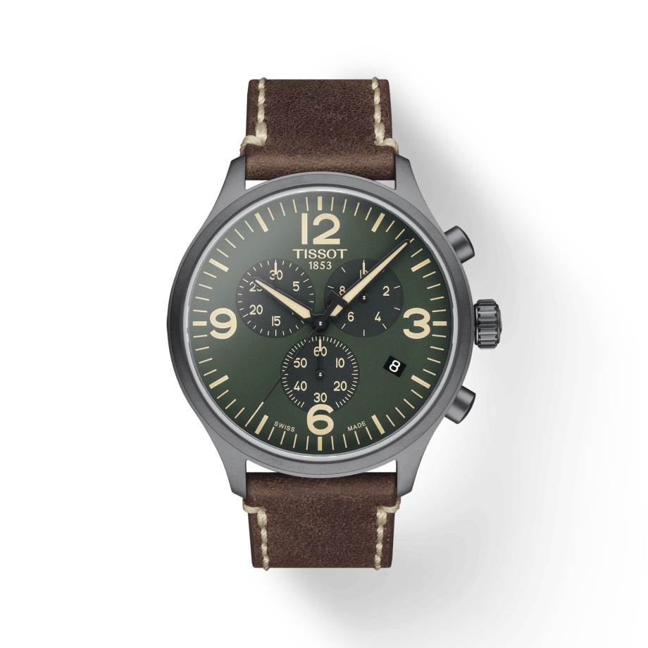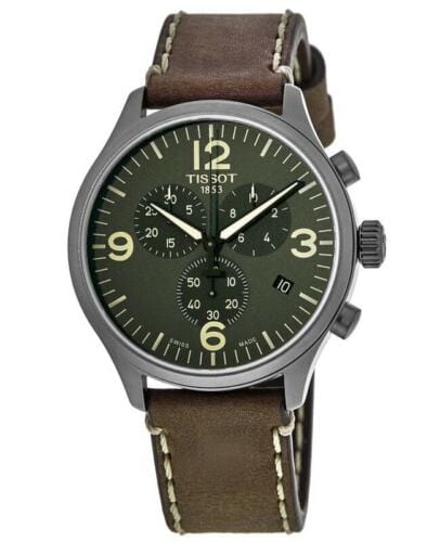 Tissot T Sport Chrono XL Green Dial Brown Leather Strap Watch For Men - T116.617.36.097.00