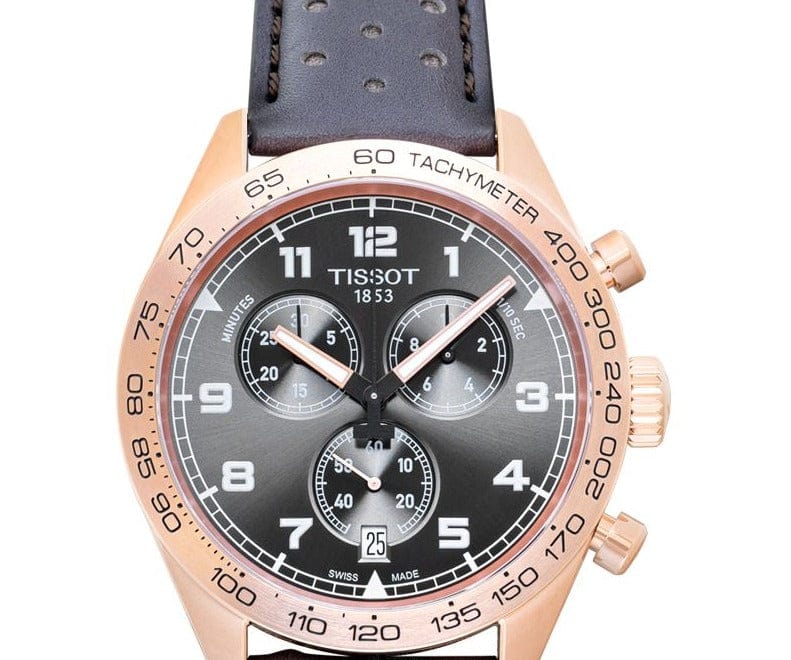 Tissot T Sport PRS 516 Chronograph Grey Dial Grey Leather Strap Watch for Men - T131.617.36.082.00