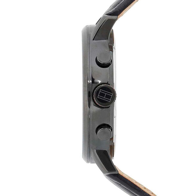 Tommy Hilfiger Aden Chronograph Black Dial Black Leather Strap Watch for Men - 1791310