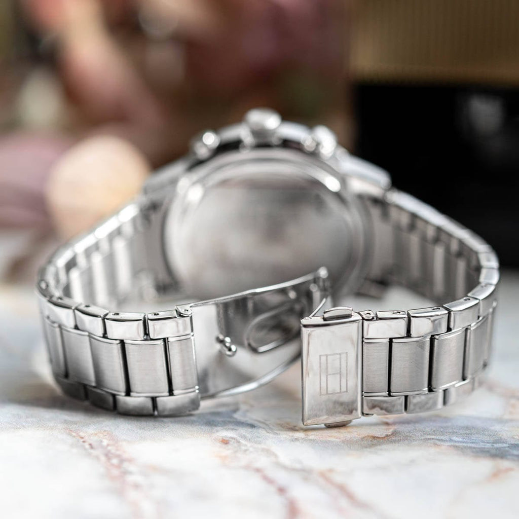 Stay on time and in style with the Tommy Hilfiger Troy Chronograph Watch for Men! This sleek and sophisticated timepiece features a blue dial and silver steel strap, perfect for any occasion. With its reliable chronograph function, you'll always be on top of your busy schedule. Elevate your look with this must-have watch!