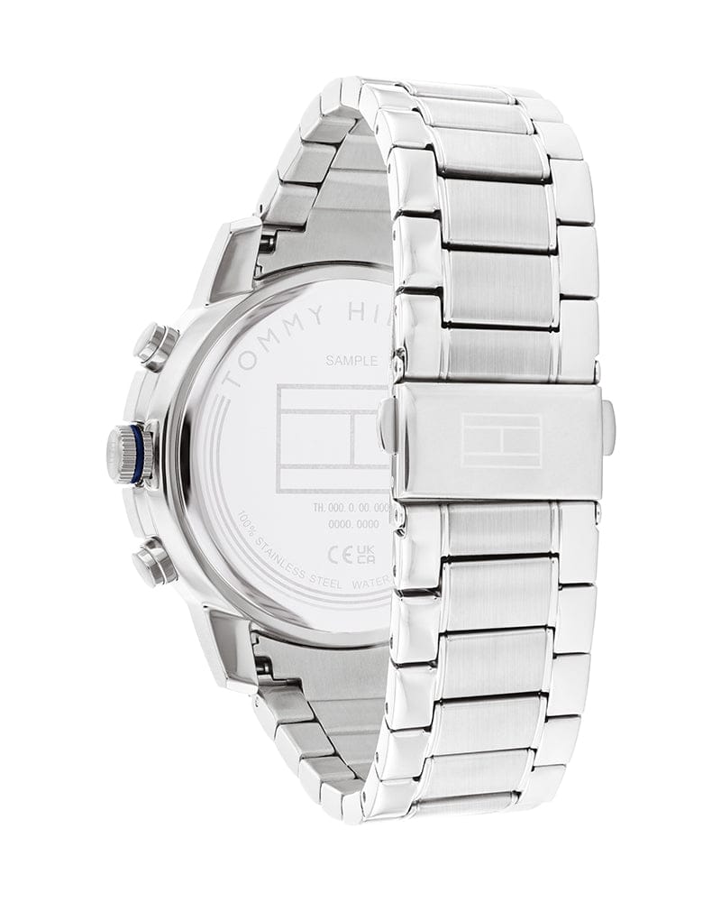 Tommy Hilfiger Troy Chronograph Blue Dial Silver Steel Strap Watch For Men - 1792104